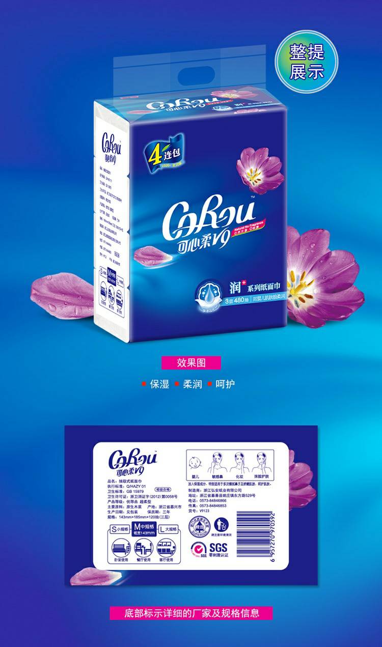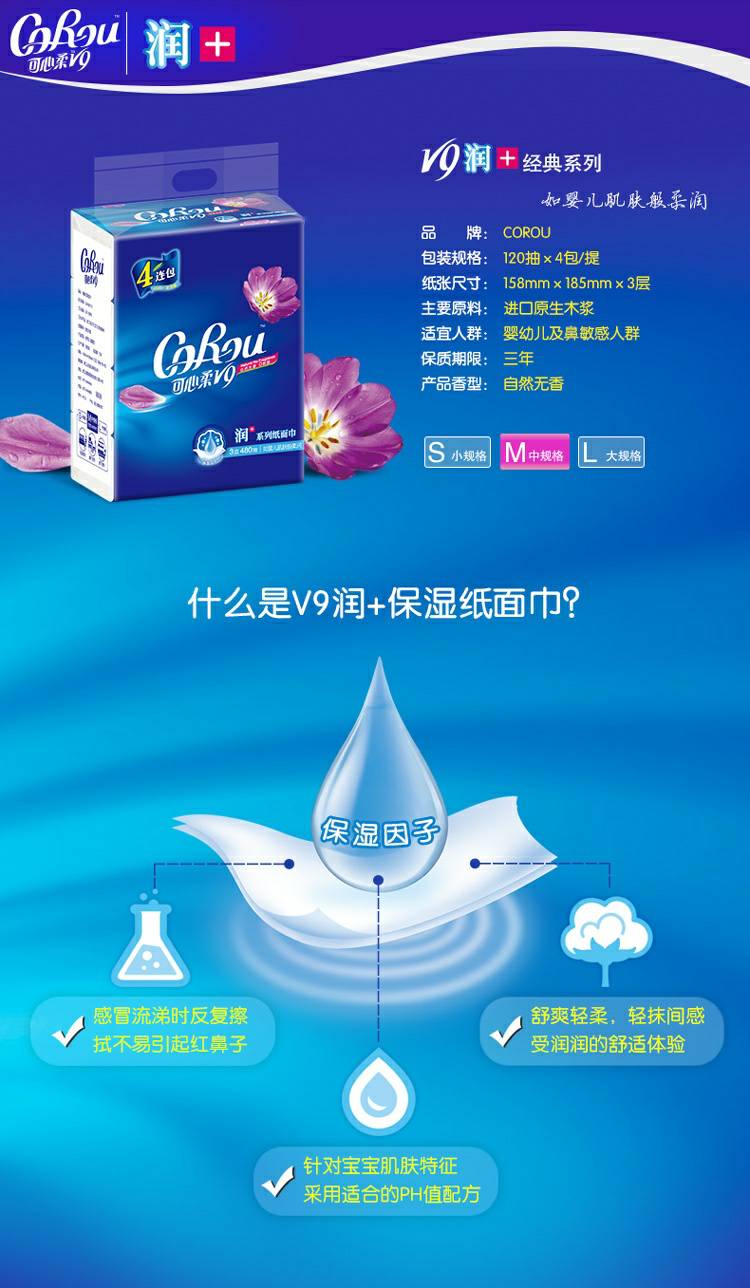 CoRou V9润+系列CoRou云柔系列白色木浆110抽